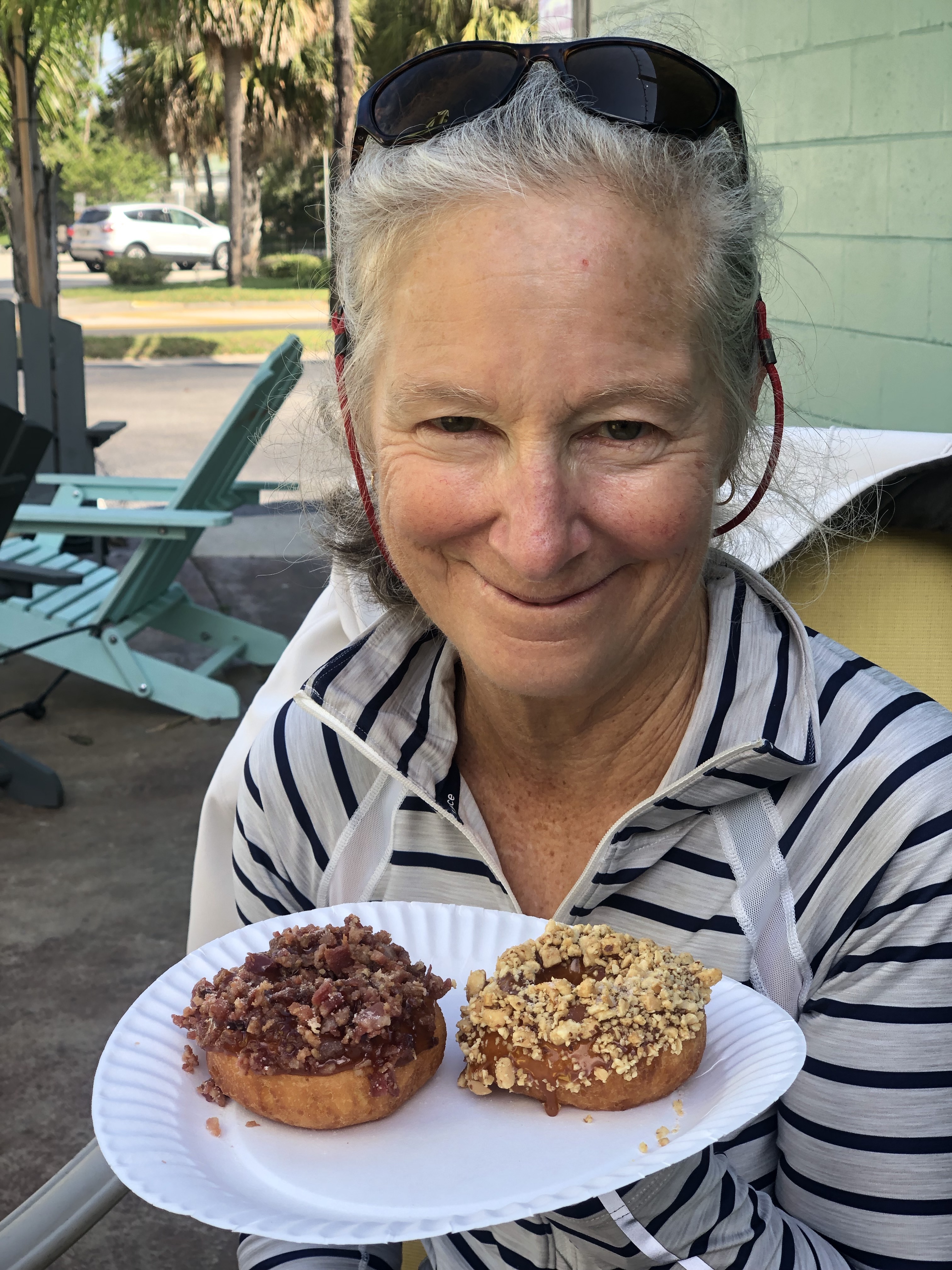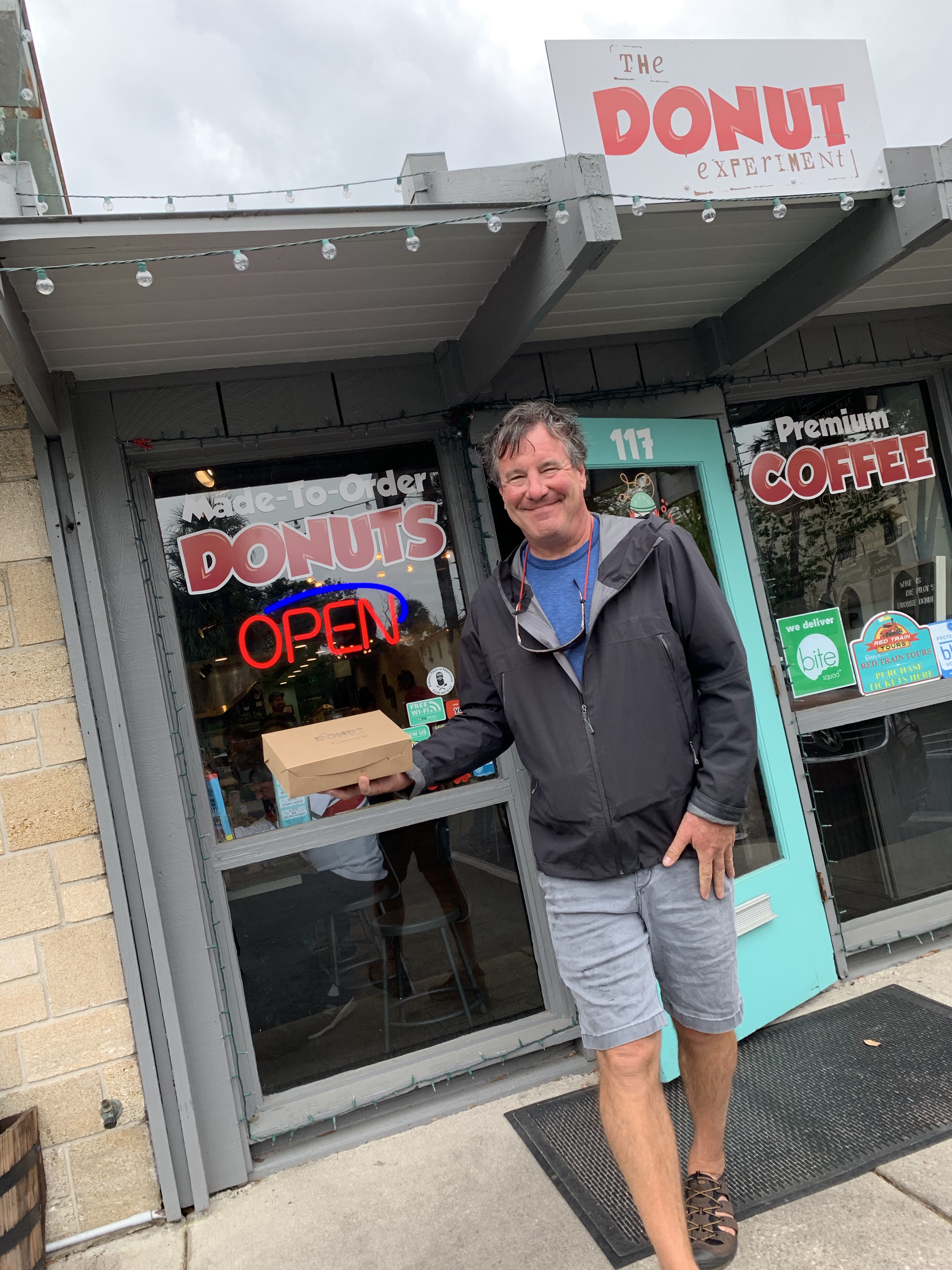 I can’t remember how I found it, but I had seen something about a do-it-yourself-fresh-donut-shop. As luck would have it, while we were on our way to the St. Augustine Distillery (for bourbon), I spied the donut shop, a tiny little place in a simple strip mall. The Donut Experiment. I made the mistake of pointing it out to Bruce. Screech and a hard left into the parking lot we went.