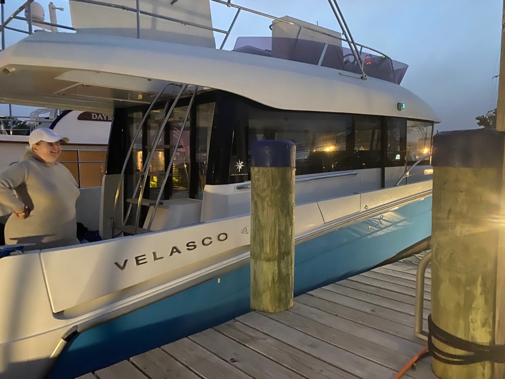 We chatted with our boat neighbors, many of whom we have seen in Nantucket before. We spent a delightful socially distanced cocktail hour with Susan and Greg aboard their Kadey Krogen 52 Privateer, enjoying lots of the cold, damp, windy fog that Nantucket is so good at serving up. And in the small world department, our slip neighbors at NEB, Sharon and Paul and their Jeanneau Velasco 42 Gleam appeared in the slip next to us late one night! They also invited us over for a socially distanced cocktail, which was good fun.